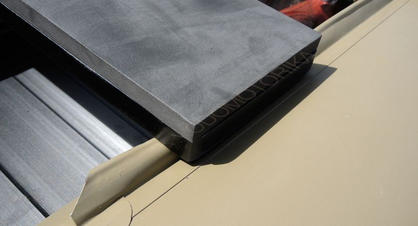 Внутренний слой мягкий и способствует сохранению целостности поверхности, верхний служит защите от износа и ультрафиолетового облучения.