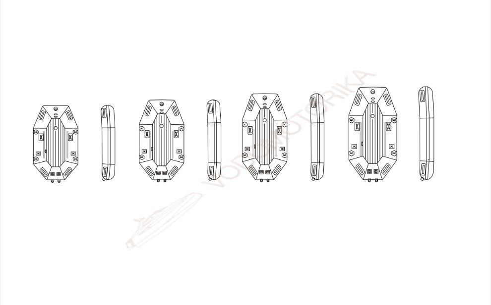 На лодке установлены ручки: для пассажиров, рулевого, для переноски лодки в носовой и кормовой части.