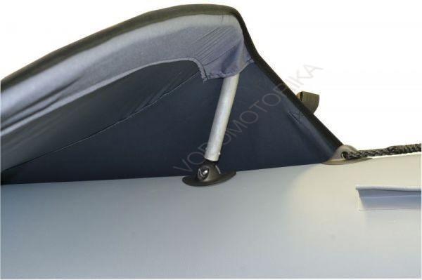 BoatMaster 310TА LUX + ТЕНТ носовой имеет стационарный транец из водостойкой фанеры, жестко приклеенный к баллонам.