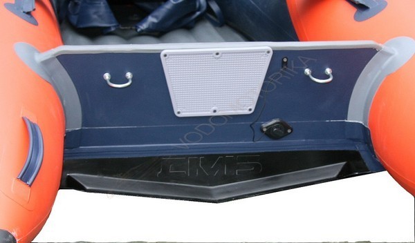 Он расположен под транцем и является жёстким окончанием надувного дна.