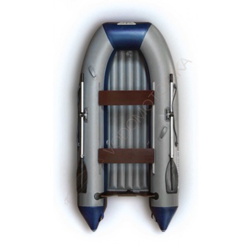 Надувная лодка поставляется в смешанной серо-синей расцветке.
