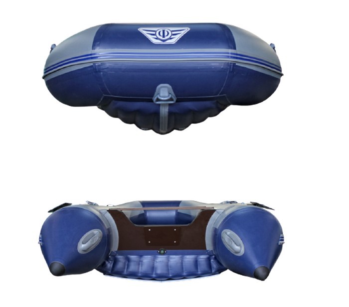 Надувная лодка поставляется в смешанной серо-синей расцветке.