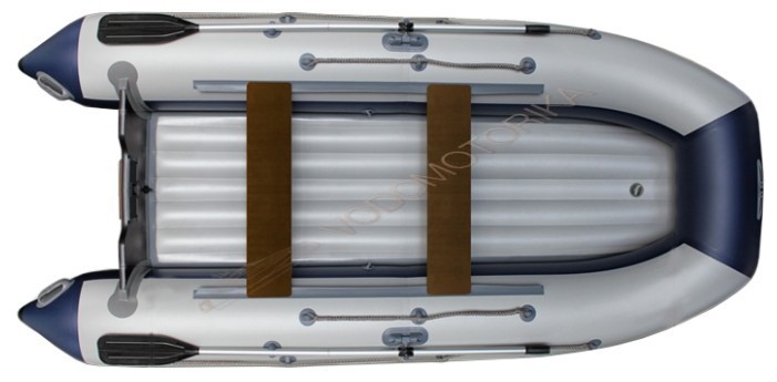 Надувная лодка поставляется в смешанной серо-синей расцветке.