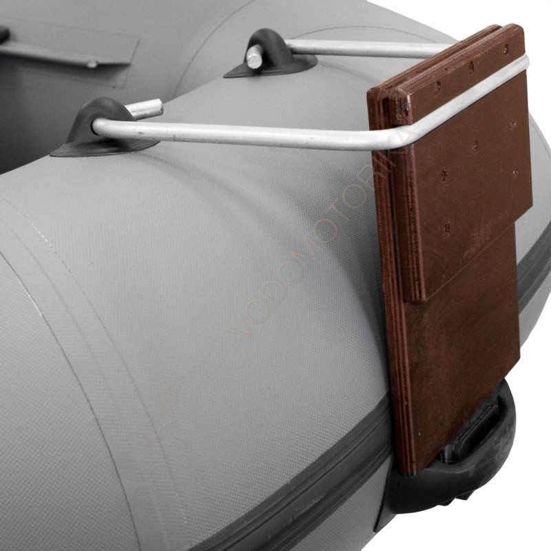 Надувная лодка оборудована навесным транцем из водостойкой фанеры.