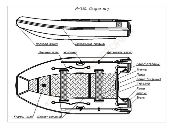 Фрегат М-330 поставляется со сборным пайолом из водостойкой фанеры с антискользящим покрытием, толщина 12 мм.