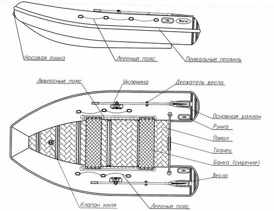 Диаметр баллонов лодки 520 мм, 4 отсека (+ 2 фальшборт, + киль).