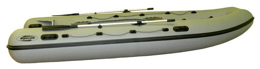 Днище дополнительно усилено по линии киля, в районе транца и на концах баллонов.