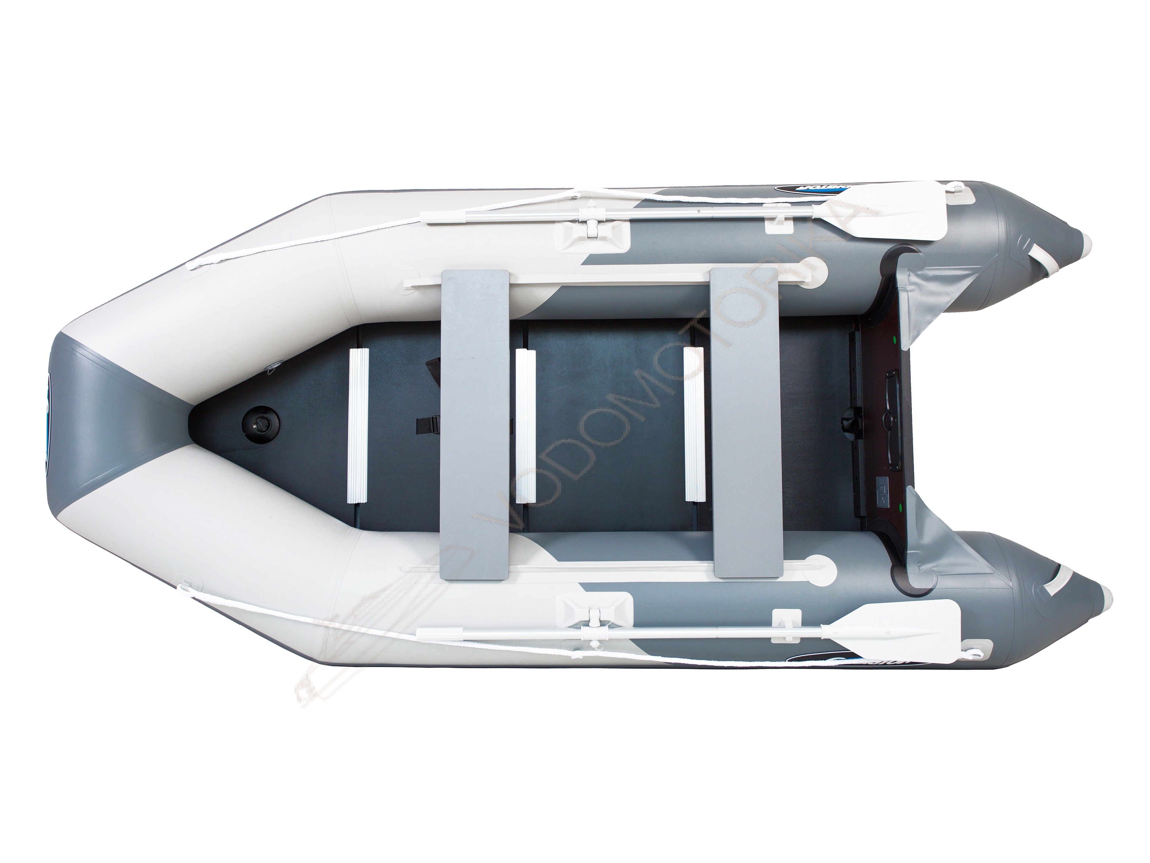 Лодка оборудована сборным щитовым пайолом. Материал – водостойкая фанера. Щиты окрашены, имеют противоскользящее покрытие. В комплект входят стрингеры, для придания жесткости конструкции используются алюминиевые детали.