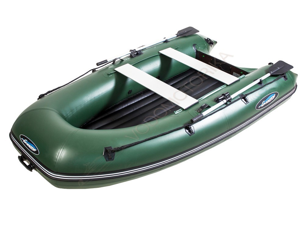В комплект GLADIATOR E 330 LT входят 2 жестких сиденья из водостойкой фанеры, местоположение которых можно регулировать замками трения вдоль направляющих на баллонах (система ликтрос/ликпаз).