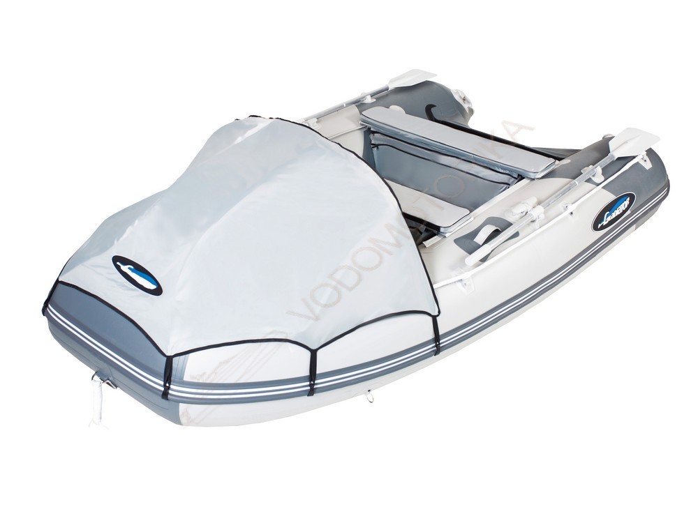 Между транцем и баллонами натянуты комингсы (брызгозащитные косынки).