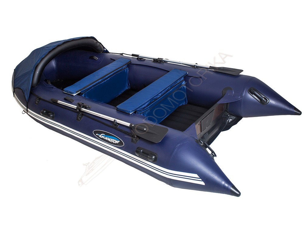 Баллоны лодки GLADIATOR E 450 изготовлены из пятислойного армированного ПВХ материала плотностью 1100 г/м2; страна производства – Южная Корея (плотность днища 1350 г/м2).