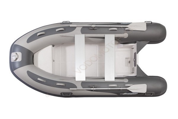 Лодка имеет пол из основного материала корпуса - стеклопластика.