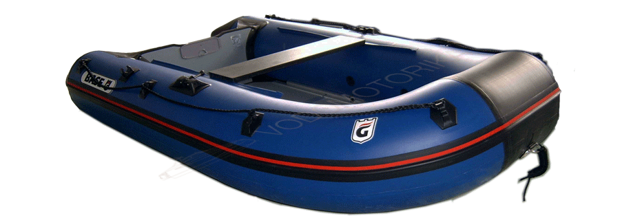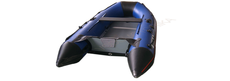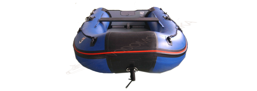 Надувная лодка оснащена стационарным жестко вклеенным транцем.