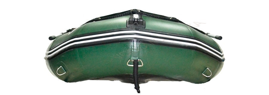 Надувная лодка оснащена стационарным жестко вклеенным транцем.