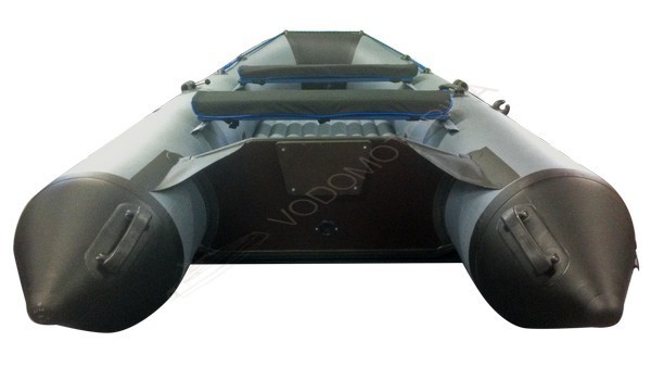 Надувная лодка имеет стационарный транец, жестко приклеенный к баллонам.