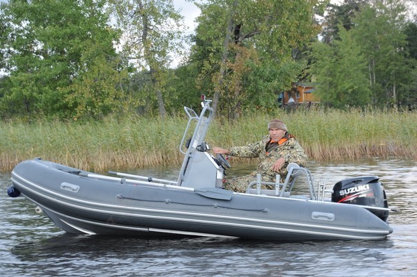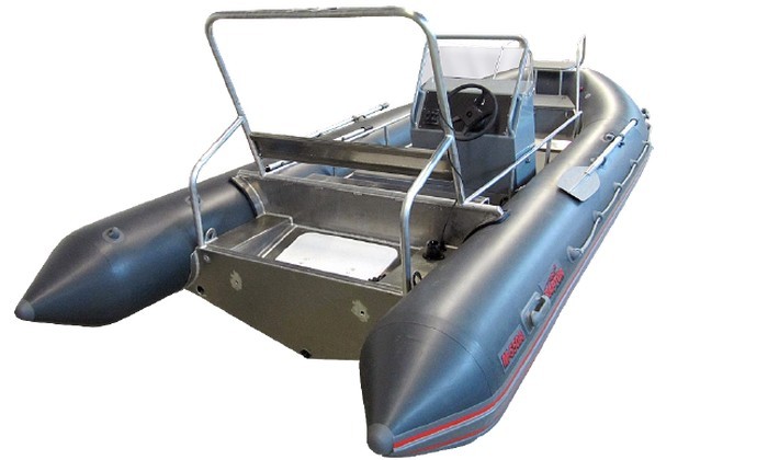 Алюминиевая лодка имеет жесткий транец, который позволяет мотору висеть и работать даже при спущенных баллонах (это позволит судну в случае чрезвычайной ситуации остаться на плаву при благоприятных погодных условиях).