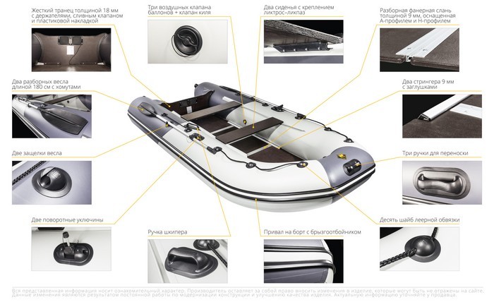 Диаметр баллонов лодки 42 см, 3 герметичных отсека (+ дно, + киль).