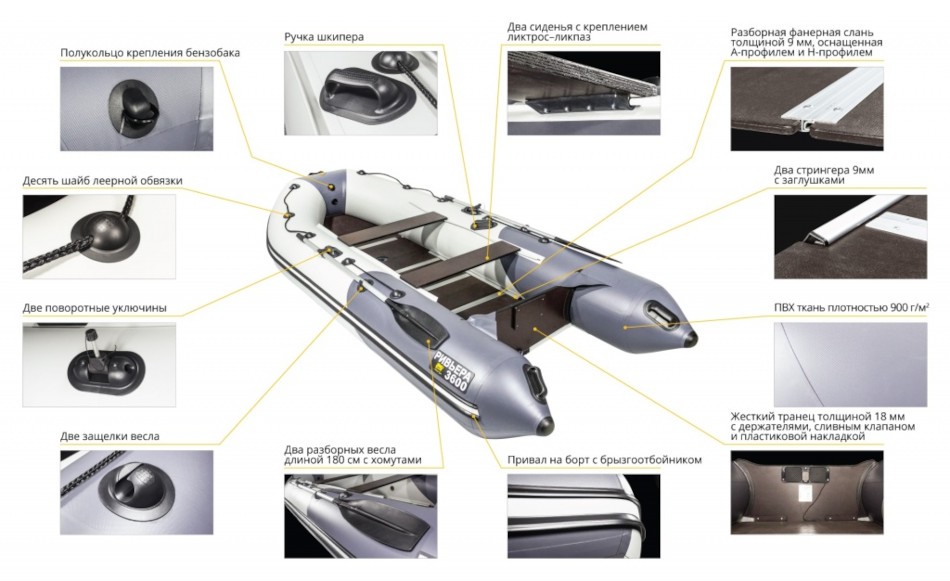 Баллоны Ривьера 2900 СК изготовлены из армированного пятислойного ПВХ плотностью 900 г/м2.