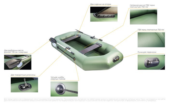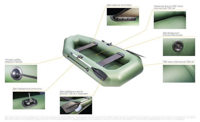 Лодка имеет натяжное днище из армированного ПВХ плотностью 750 г/м2.