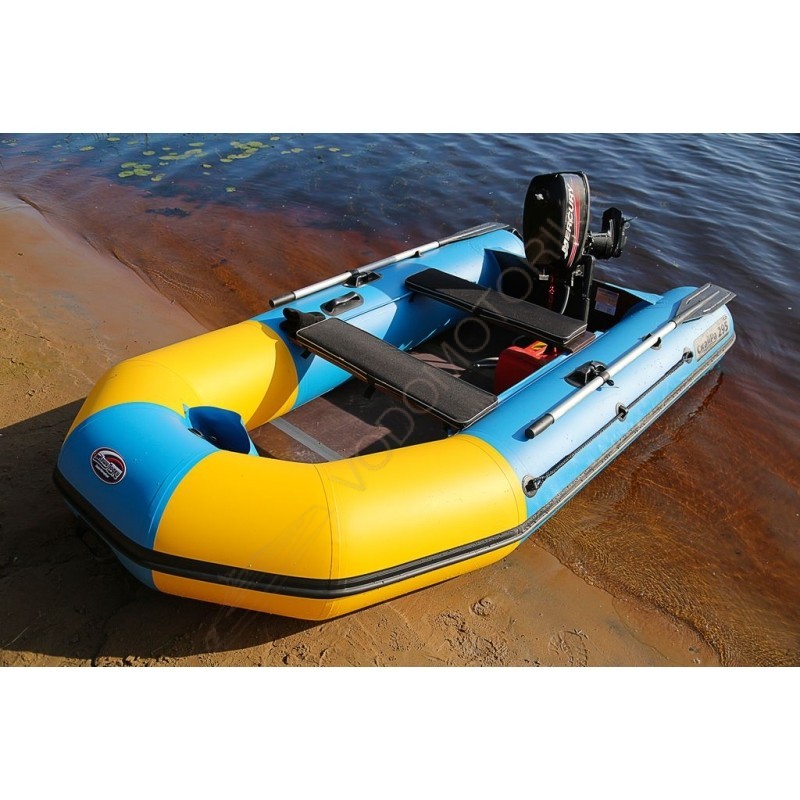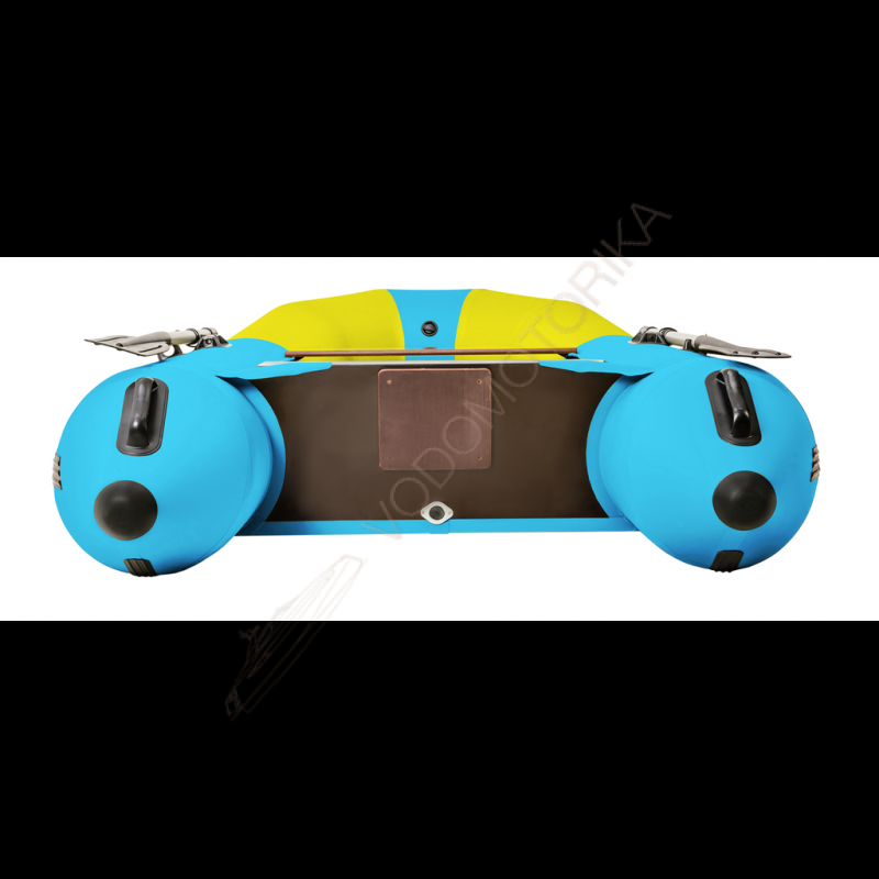 На лодке установлен стационарный транец, жестко приклеенный к баллонам.
