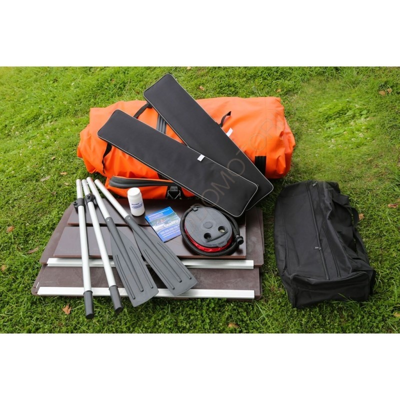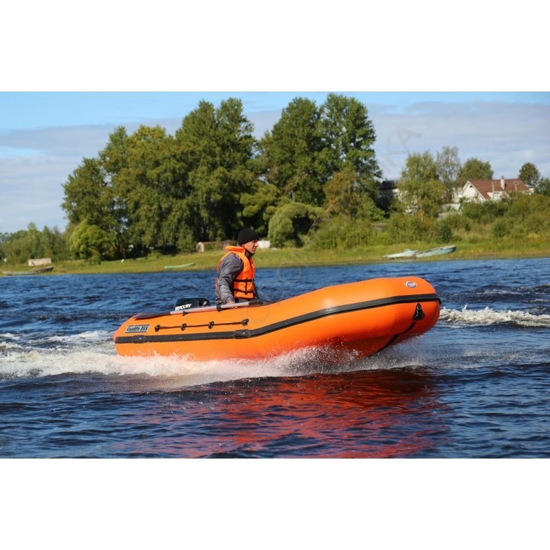 Диаметр баллонов 51 см. 3 герметичных отсека (+ 1 киль). Швы склеены и усилены с обеих сторон слоями ПВХ. Используемый клей образует с основным материалом одно целое на молекулярном уровне.