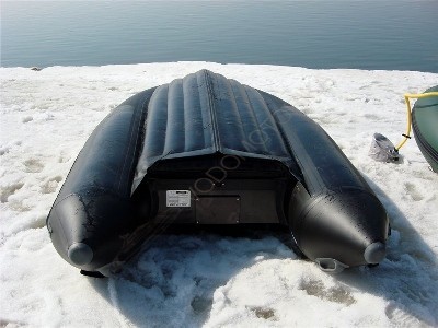 Лодка имеет V-образное надувное днище по типу надувного матраца.