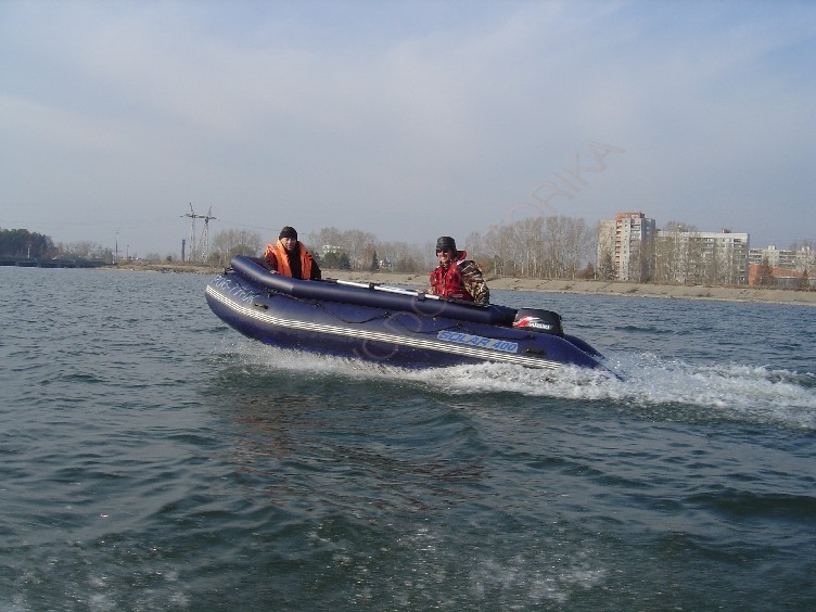 Лодка имеет V-образное надувное днище по типу надувного матраца.