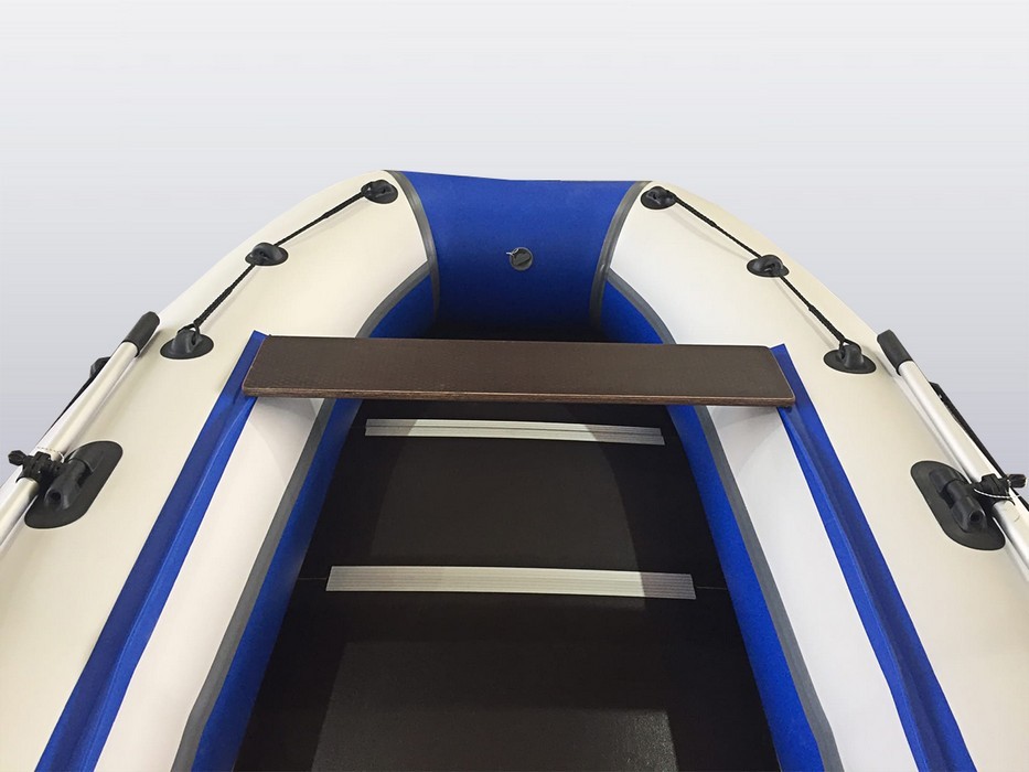 Varyag 340 имеет транец из влагостойкой фанеры, приклеенный к баллонам.
