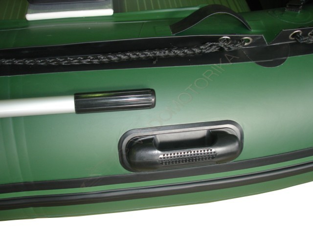 Днище по линии киля, баллонов и низу транца дополнительно усилено полосами ПВХ.