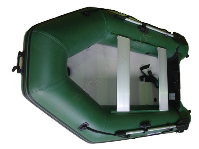 Днище по линии киля, баллонов и низу транца дополнительно усилено полосами ПВХ.