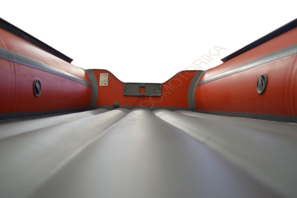 Баллоны переменного сечения лодки Zvezda 330 СТАНДАРТ НДНД изготовлены из армированного пятислойного ПВХ плотностью 850 г/м2, днища 850 г/м2., днища 1100 г/м2.