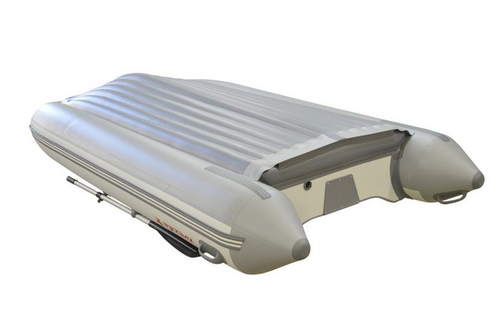 Баллоны переменного сечения лодки Zvezda КИТОБОЙ 360 НДНД изготовлены из армированного пятислойного ПВХ плотностью 850 г/м2, днища 1100 г/м2.