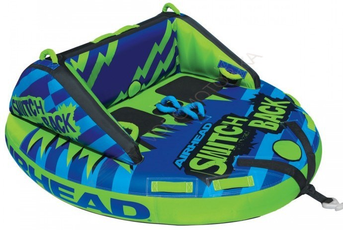 Новый AirHead SWITCHBACK с различными вариантами посадки для четырех человек. При полной загрузке два человека размещаются в кресле с высокой спинкой и боковой поддержкой, другие два располагаются в положении "на коленях" за спинкой "дивана". Этот потрясающй аттракцион легко скользит даже по большим волнам!