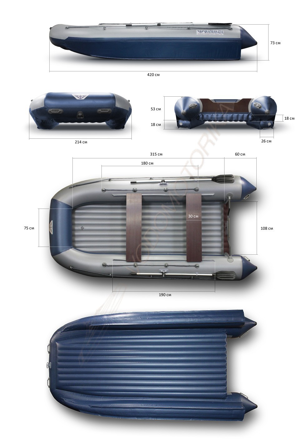 Флагман 420K имеет длину 4.20 м при ширине 2.14 м.