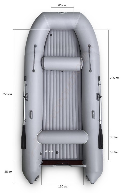 Лодка насчитывает 3 герметичных отсека (+ 2 скеги, + 1 пол, + 2 пуфика).