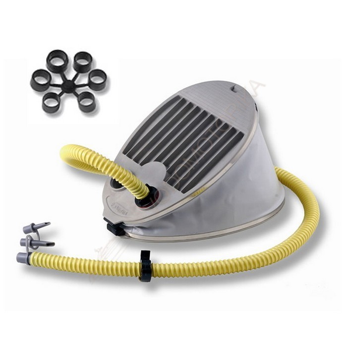 BRAVO № 7 - классический насос-«лягушка» со встроенным стрелочным манометром. Изготовлен из высокопрочного пластика и ПВХ-ткани. Все металлические детали – из нержавеющей стали. Шланги снабжены тремя патрубками разного диаметра и универсальными адаптерами, позволяющими подобрать практически любой необходимый диаметр.