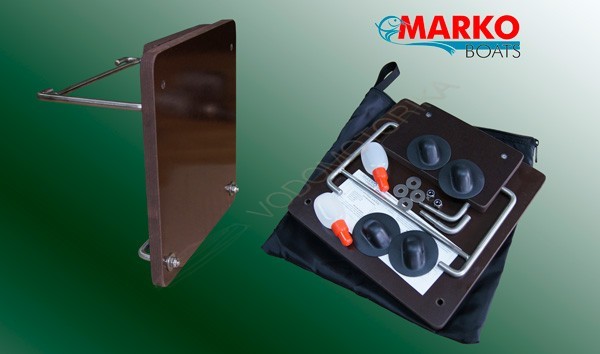 Транцевая доска производится из специальной влагостойкой ламинированной фанеры, все кронштейны, гайки и шайбы - из нержавеющей стали.
