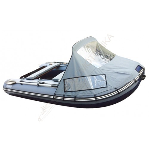 Тент не требует никакого ухода, он легко складывается и убирается вместе с каркасом в сумку для хранения до следующего выхода на воду. Носовой тент со стеклом так же положительно влияет на ходовые качества надувной лодки на скорости, он служит как спойлер прижимая воздушным потоком носовую часть лодки к поверхности воды не давая мотору зарываться.