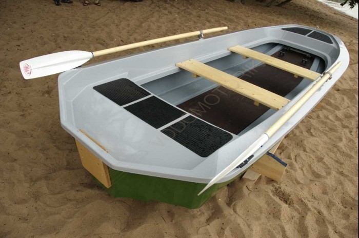 Пластиковая лодка поставляется в зеленом цвете со светло-зеленым кокпитом (артикулы в таблице 60014/50007 соответственно).