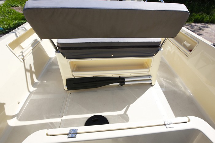 Пол лодки изготовлен из стеклопластика с противоскользящим покрытием.