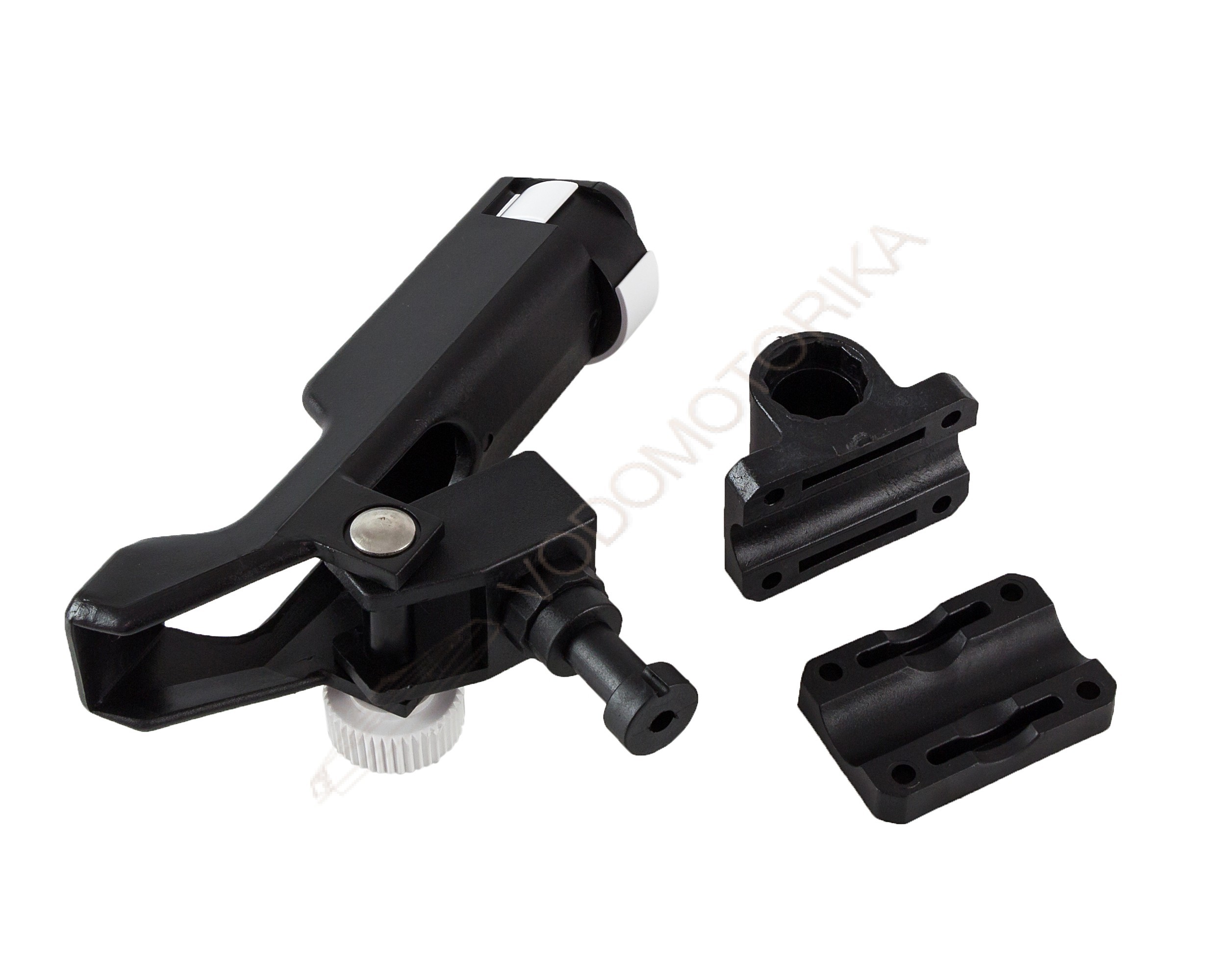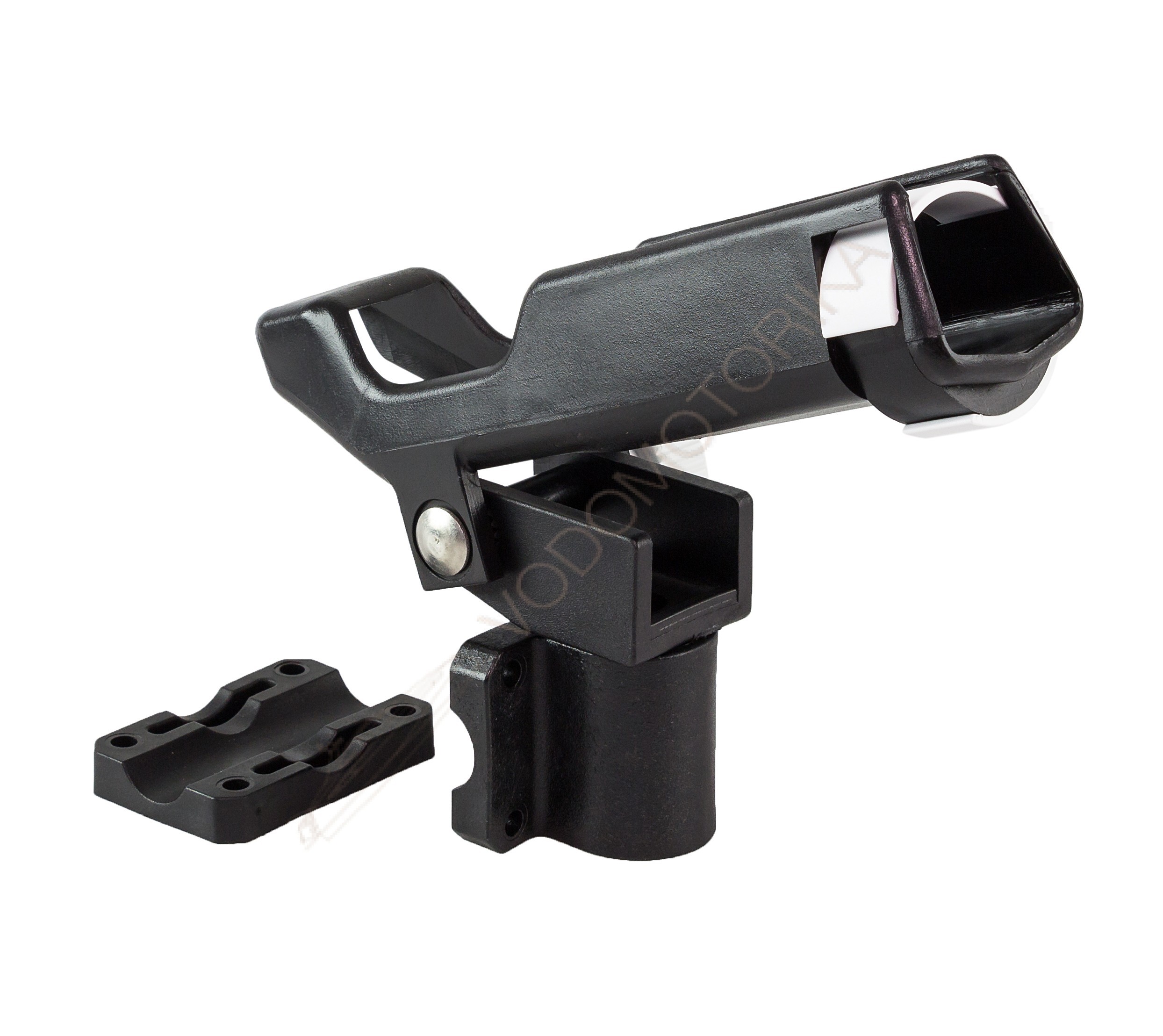 Держатель спиннинга с универсальным креплением и фиксатором удилища (фиксатор убережёт потерю спиннинга при движение судна). Крепление позволяет разместить подставку как на леере так и на плоской поверхности.