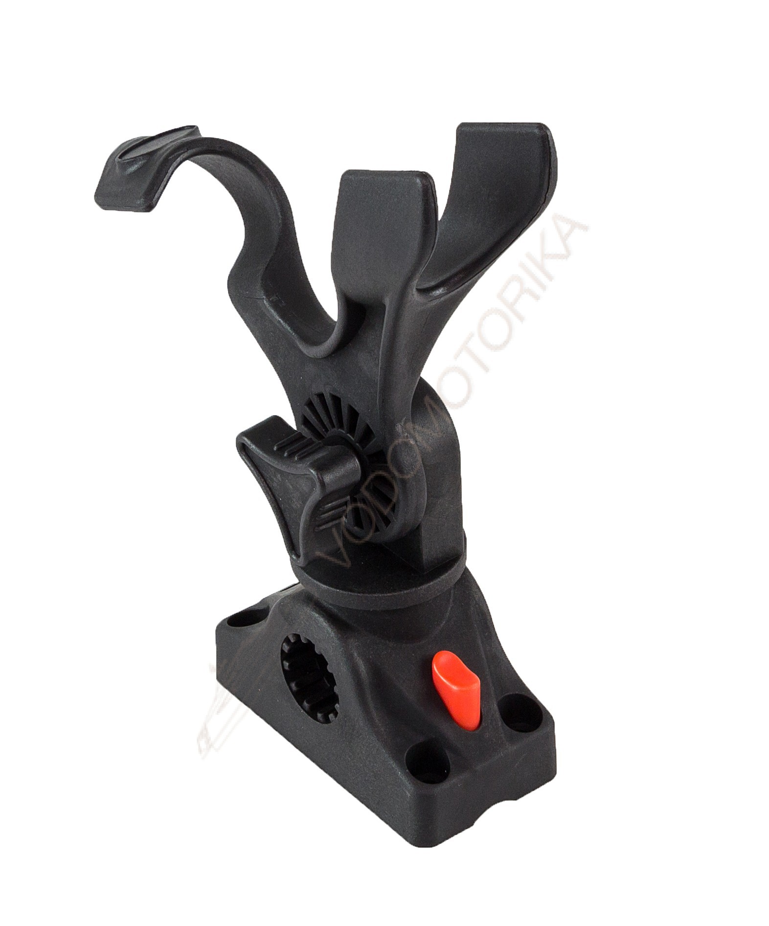 Подставка под удочку с регулируемым держателем благодаря которому можно выбрать угол наклона и направление удочки. Подставка и держатель изготовлены из прочного пластика.