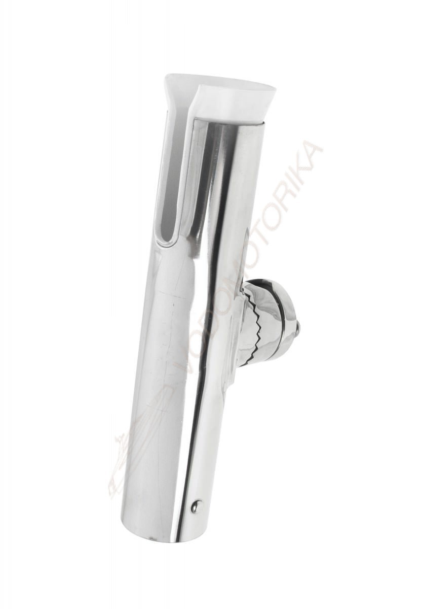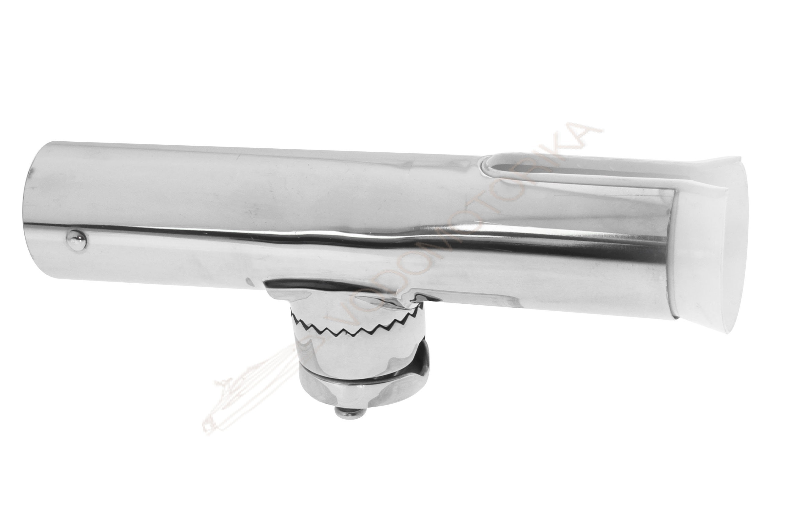 Подставка под удочку из нержавеющей стали. Комплектуется поворотным креплением, который позволяет закрепить подставку на леере диаметром 20-25 мм.
