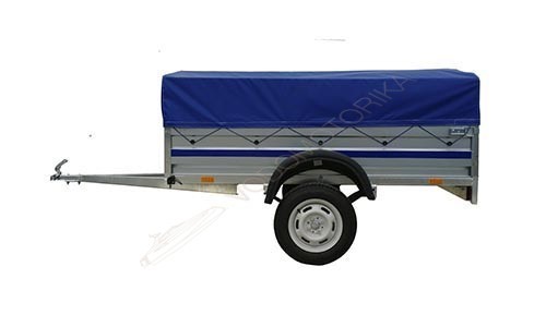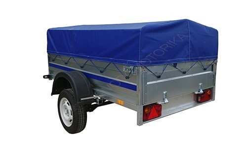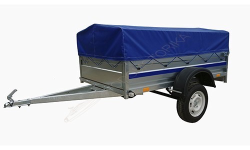 Тент быстросъемный высотой 300 мм, защищает грузы от дождя, снега и грязи. Усиленные рессоры добавляют плавности движения, что особенно важно на сложных российских дорогах. Дно этого прицепа выполнено из влагостойкой ламинированной фанеры. Рама усилена, благодаря чему можно перевозить большие грузы. Рессора ALKO, ступица колеса AutoFlex-Knott. Оцинкованная сталь использована как материал для бортов