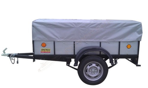Оцинкованный грузовой прицеп 7135 ПП-2.8 «Прогресс» к легковым автомобилям предназначен для перевозки различных грузов, в том числе габаритных, оборудован V-образным дышлом. Прицеп одноосный, с открывающимися задним бортом. Быстросъемный тент защищает снаряжение и имущество от снега, дождя и грязи.