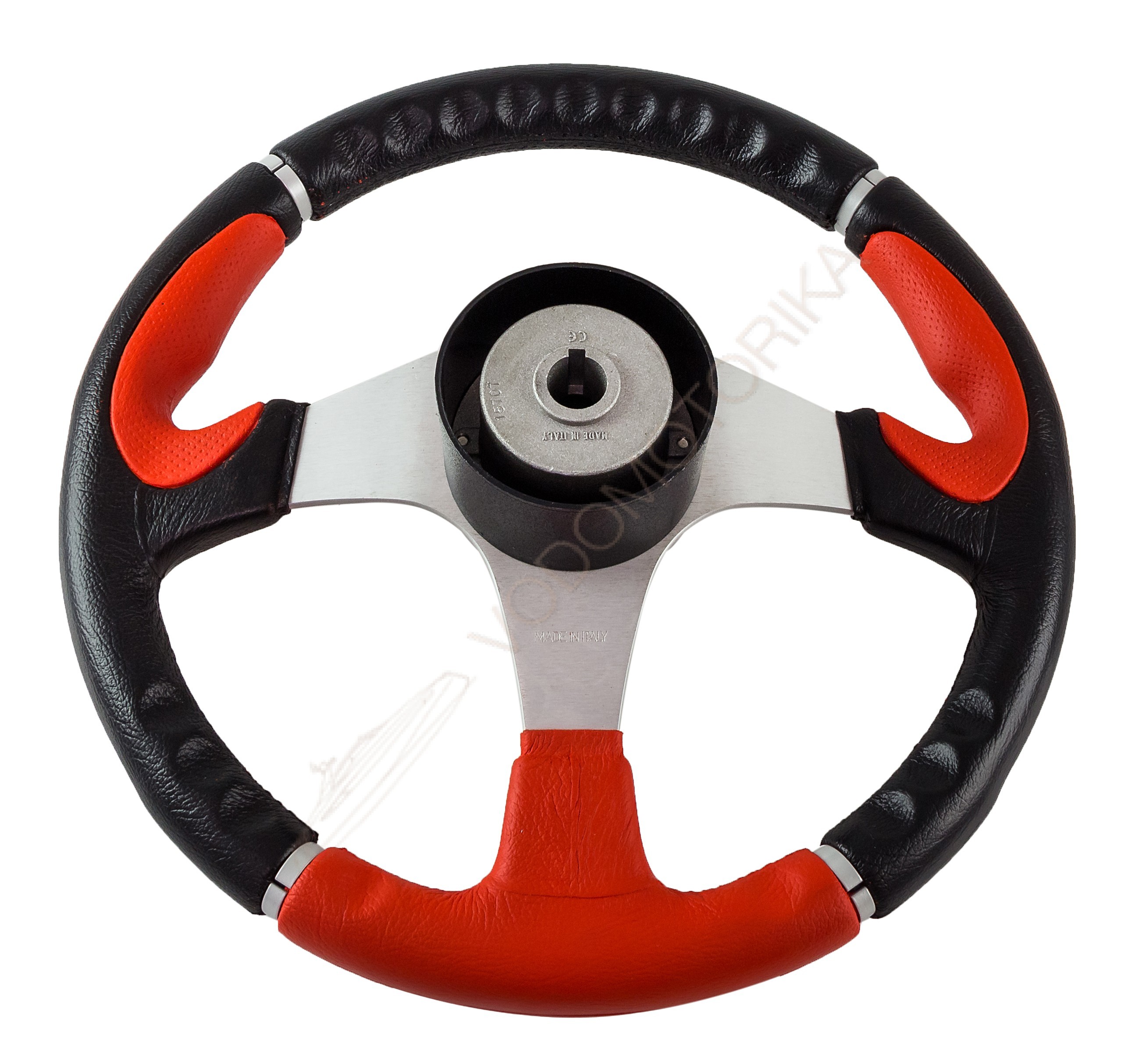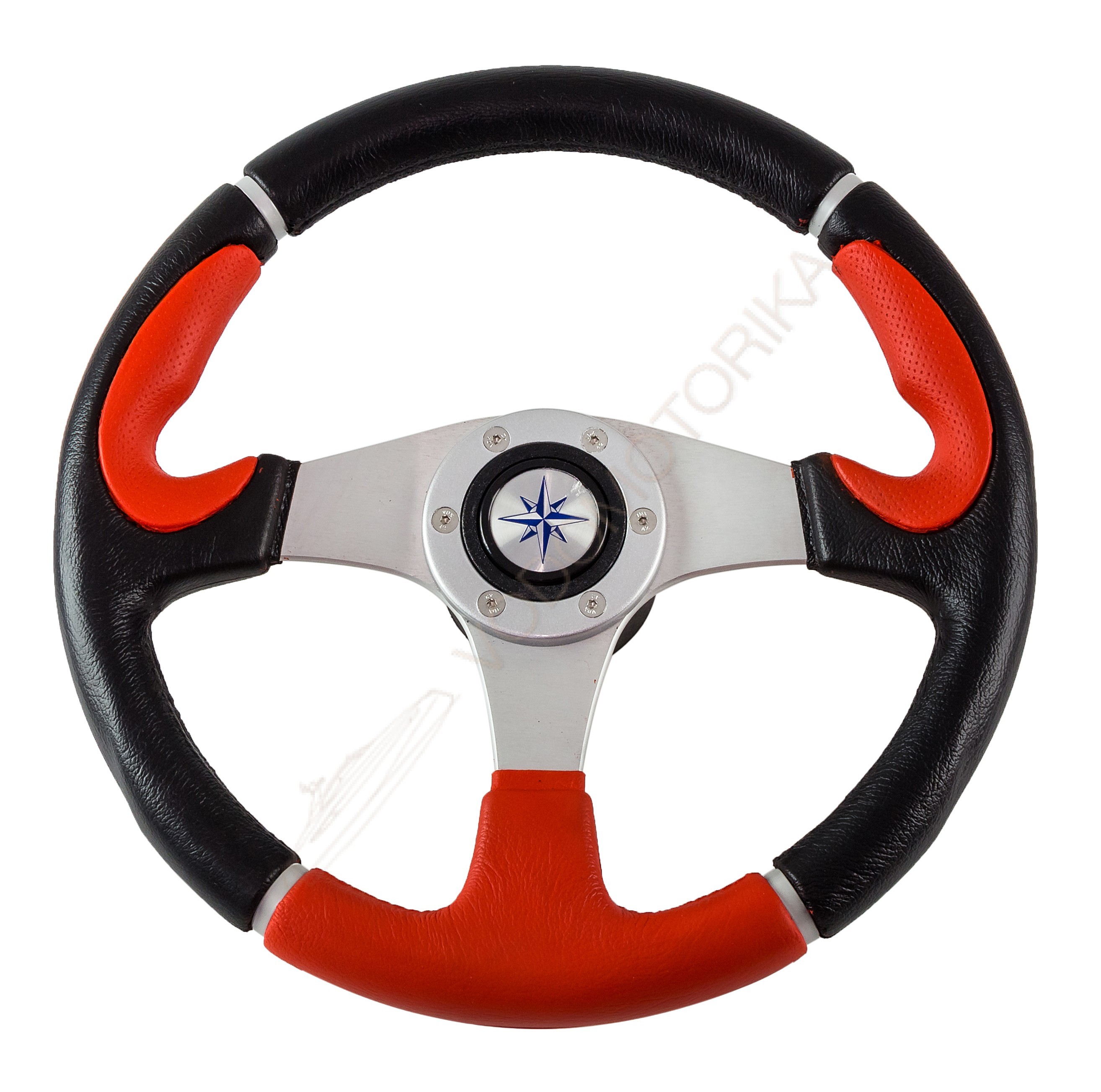 Рулевое колесо ORION обод черно-красный, спицы серебряные д. 355 мм Volanti Luisi