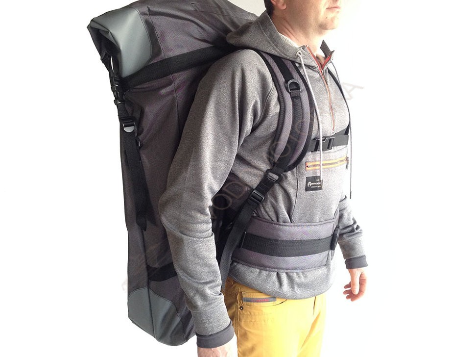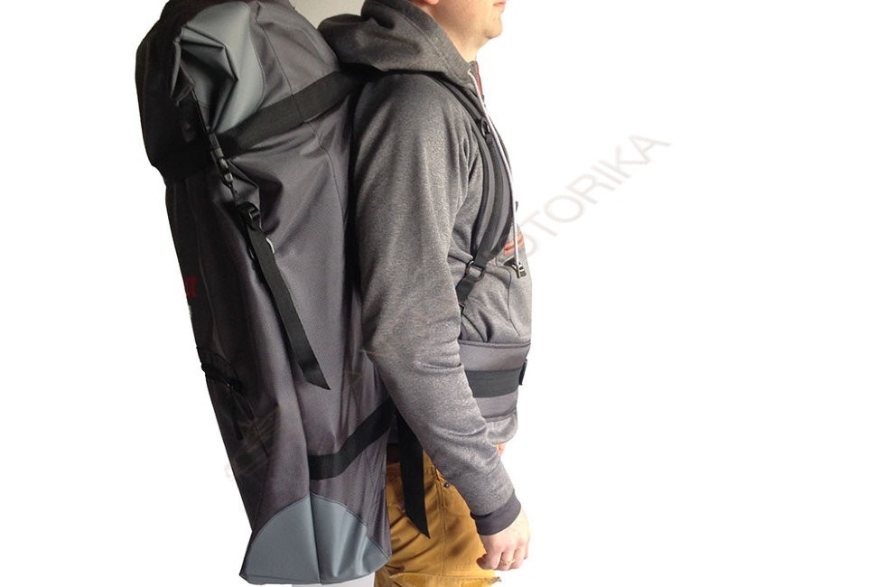 Рюкзак выполнен из прочной ткани плотностью 1680D с полиуретаном. В местах интенсивных нагрузок на ткань сделано дополнительное усиление из ПВХ ткани. Лямки анатомической формы позволяют переносить катамаран на бОльшие по сравнению со штатным мешком расстояния. Поясничная поддержка надежно фиксирует катамаран при переноске. Удобные пряжки фастекс позволяют без труда застегнуть и подогнать под нужные размеры все элементы рюкзака.