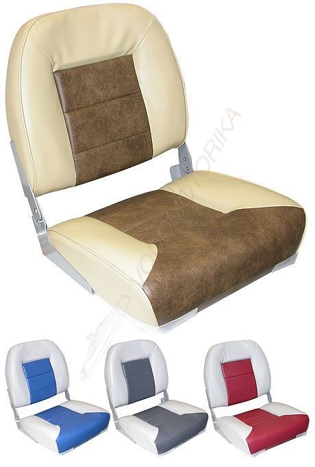 Мягкое сиденье со складной спинкой. Обивка из винила, устойчивого к воздействию влаги и ультрафиолета и не впитывающего жидкостей.