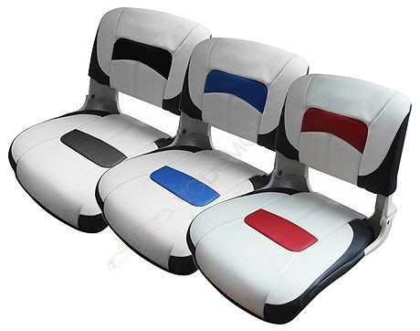 Мягкое сиденье с низкой складной спинкой. Обивка из винила, устойчивого к воздействию влаги и ультрафиолета и не впитывающего жидкостей.