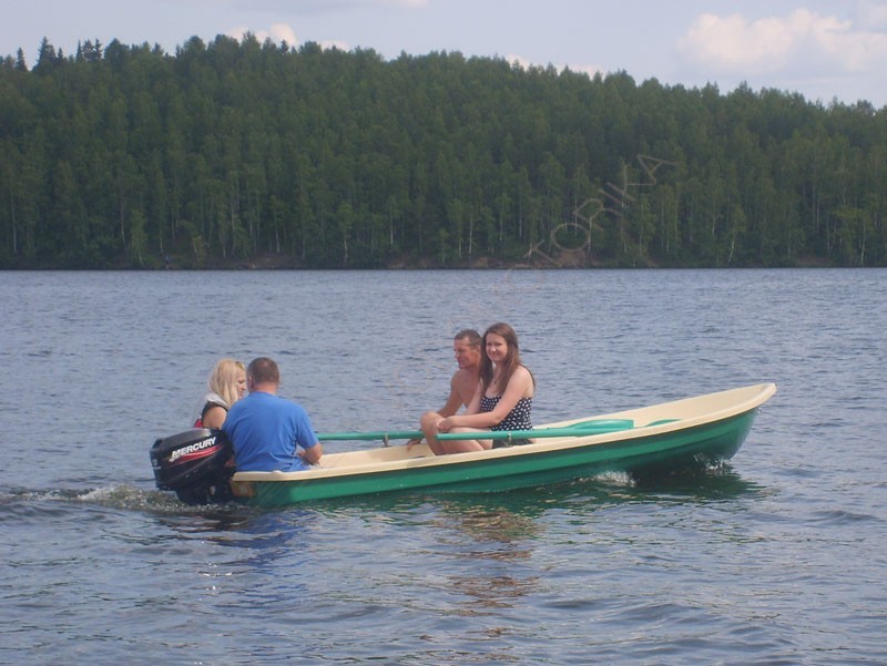 Пластиковая лодка поставляется бежево-зеленом цвете.